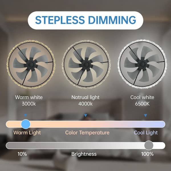 Virella 24 in. LED Indoor Black Crystal Bladeless Low Profile Ceiling Fan Flush Mount Smart App Remote Control, Dimmable
