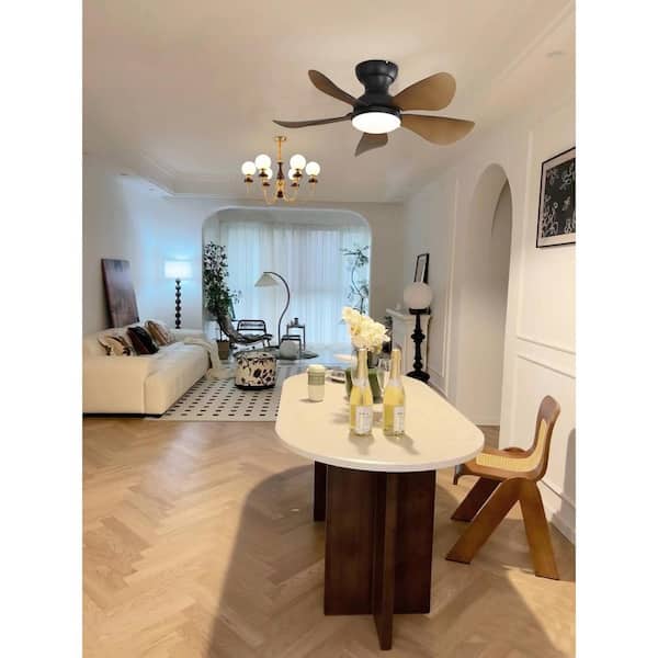 29 in. Indoor Black Ceiling Fan Remote Control Reversible DC Motor with Integrated LED Light