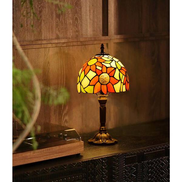 Decorative 14.6 in. Multi-Colored Tiffany-Style Table Lamp Sunflower Bronze Classic Desk Lamp