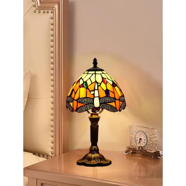 Decorative 14.6 in. Multicolored Tiffany-Style Table Lamp Dragonfly