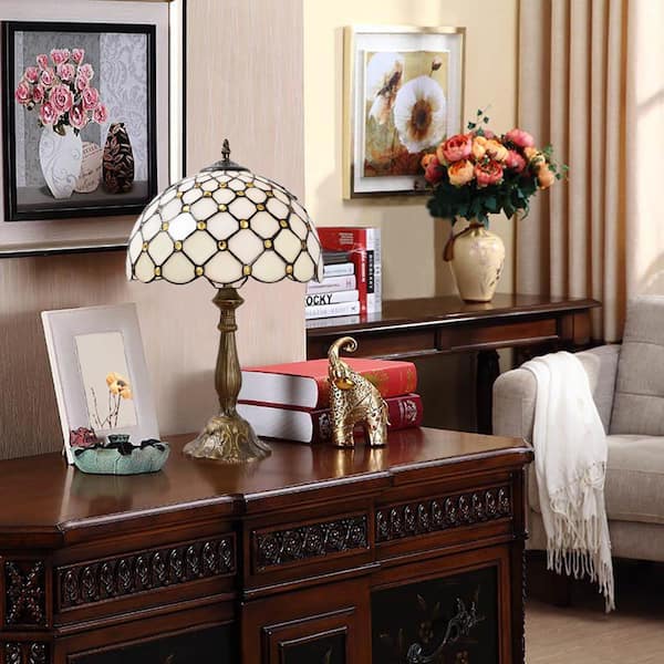 Decorative 18.1 in. Multi-Colored Tiffany-Style Table Lamp Bronze Finish Glass Bedside Lamp