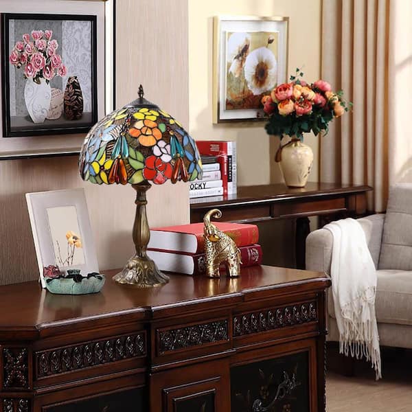 Decorative 18.1 in. Multicolored Glass Table Lamp Tiffany-Style