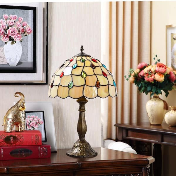 Decorative 18.1 in. Multicolored Tiffany-Style Table Lamp Bronze Finish Traditional Bedside Lamp