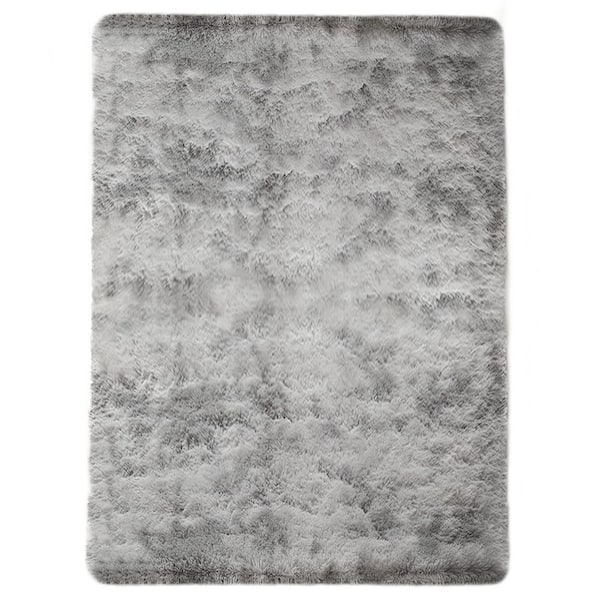 Plush Shag Light Grey 5 ft. x 7 ft. Solid Polyester Area Rug