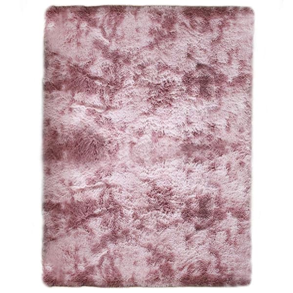 Plush Shag Pink 5 ft. x 10 ft. Solid Polyester Area Rug