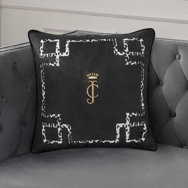 Lattice Black Animal Print Embroidered Polyester 20 in. x 20 in. Throw Pillow