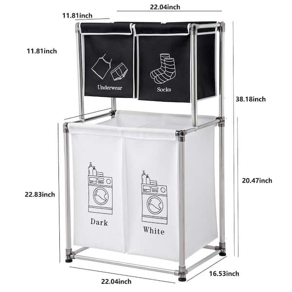 Laundry Hamper 2-Tier Laundry Sorter with 4-Removable Bags for Organizing Clothes, Laundry, Lights, Darks