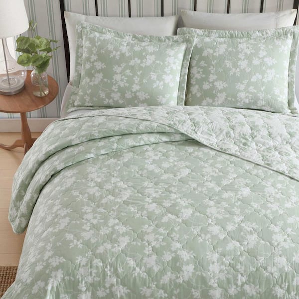 Adorabelle Silhouette 3-Piece Green/Cream Full/Queen Cotton Quilt Set