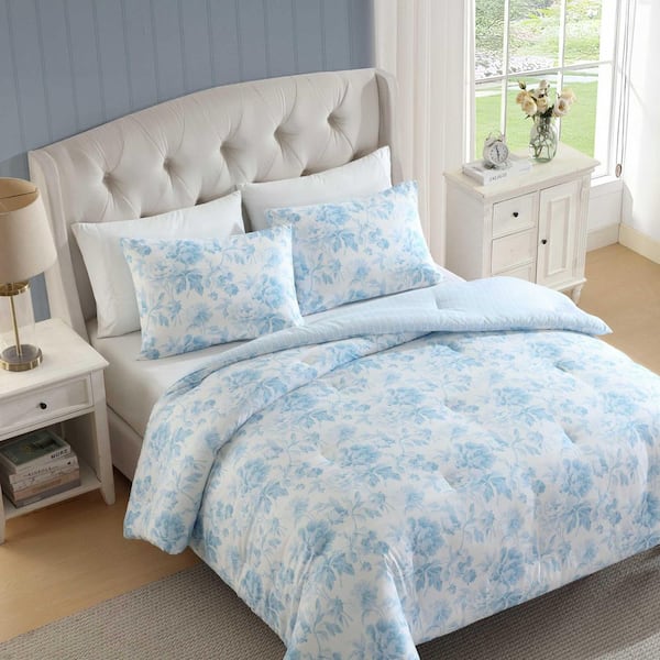 Anja Textured Toile 4-Piece Chambray Blue/White Polyester Twin Xl Comforter Set