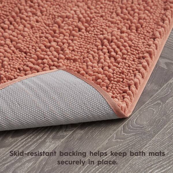 Astor With TPR Backing 17 in. x 24 in. Coral Solid Color Polyester Rectangle Bath Mat