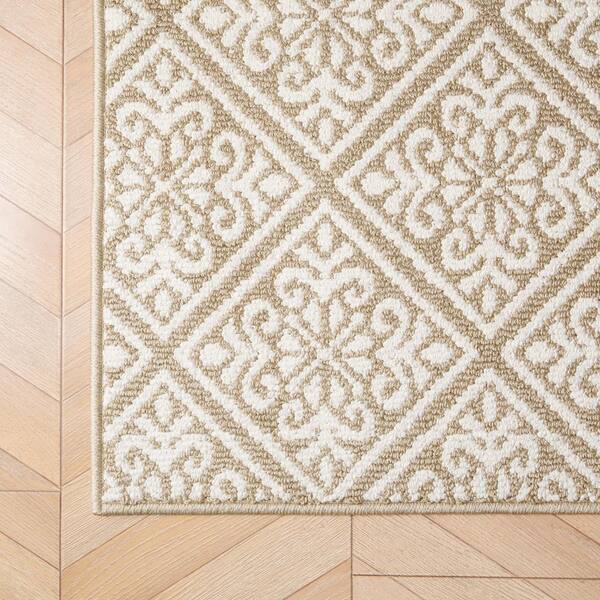 Austell 2-Tone Berber/Ivory 2 ft. x 5 ft. Geometric Polypropylene 2-Piece Rug Set