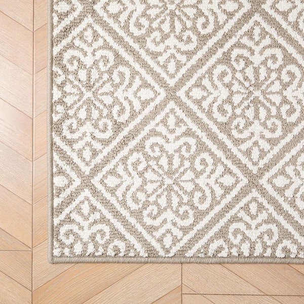 Austell 2-Tone Linen/Ivory 2 ft. x 8 ft. Geometric Polypropylene Runner Rug