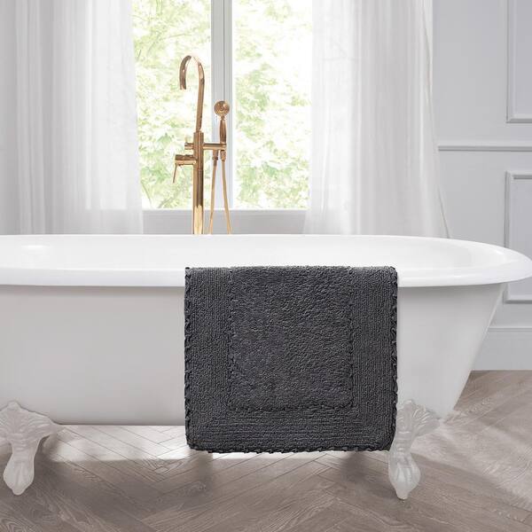 Cotton Ruffle 17 in. x 24 in. Bath Rug in Dark Gray