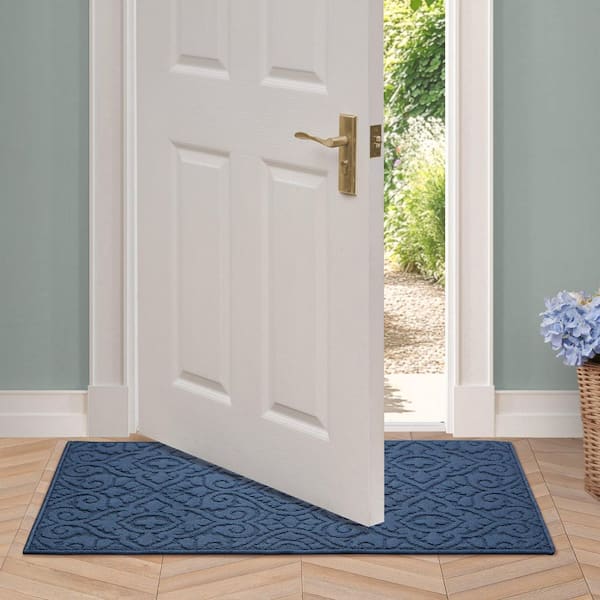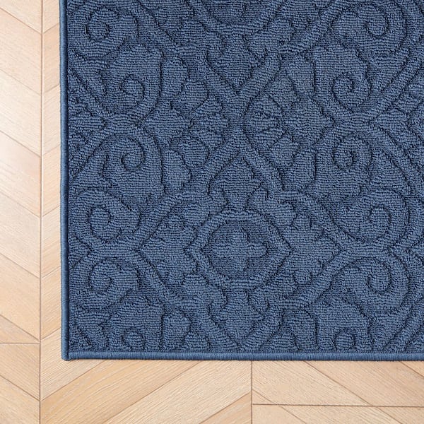 Feya Solid Dusty Navy 2 ft. x 4 ft. Tufted Medallion Polypropylene Accent Rug