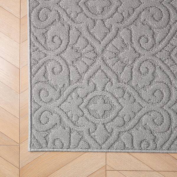 Feya Solid Light Gray 2 ft. x 5 ft. Tufted Medallion Polypropylene Runner Rug