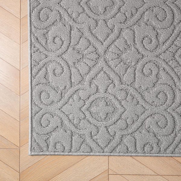 Feya Solid Light Gray 2 ft. x 8 ft. Tufted Medallion Polypropylene Runner Rug