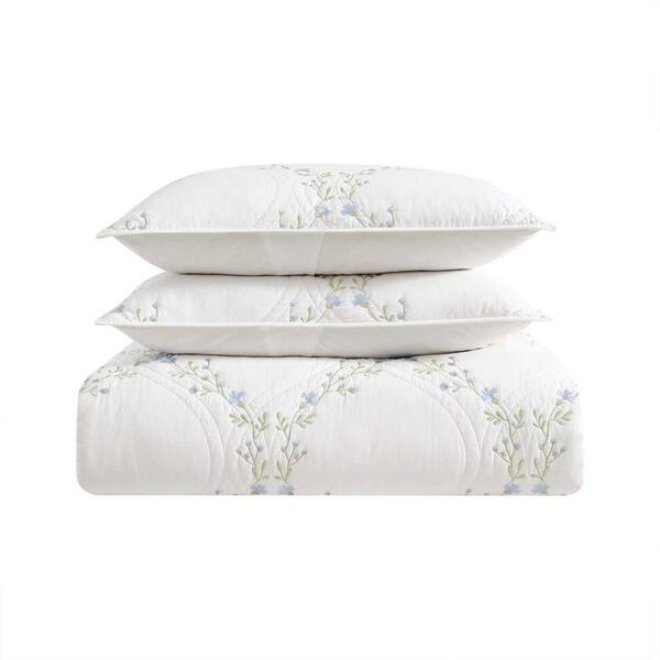 Floral Embroidery 2-Piece Blue/Green Cotton Twin Quilt Set