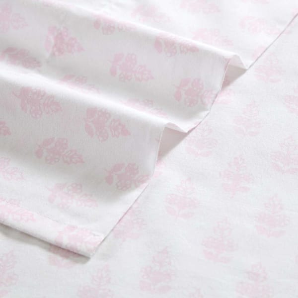 Francesca Floral 4-Piece Pink/White Percale Cotton Queen Sheet Set