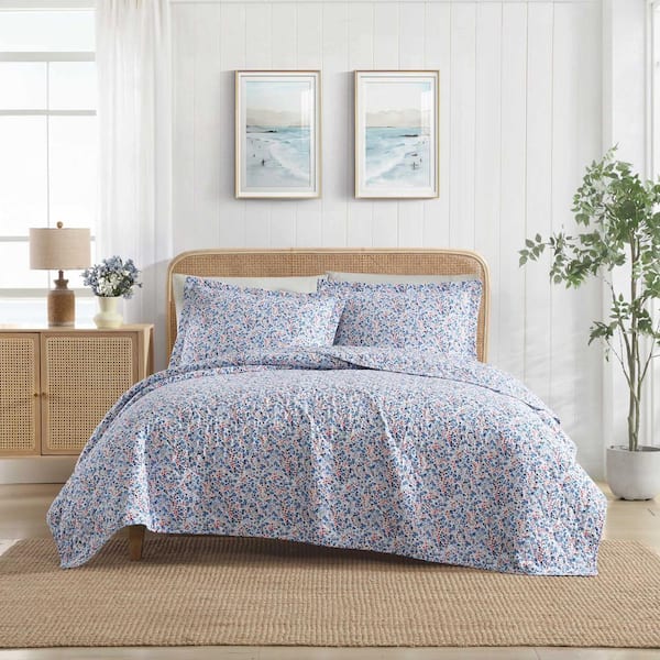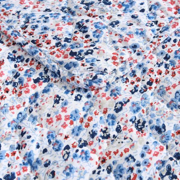 Leona Flower 2-Piece Blue/Red Cotton Twin Quilt Set
