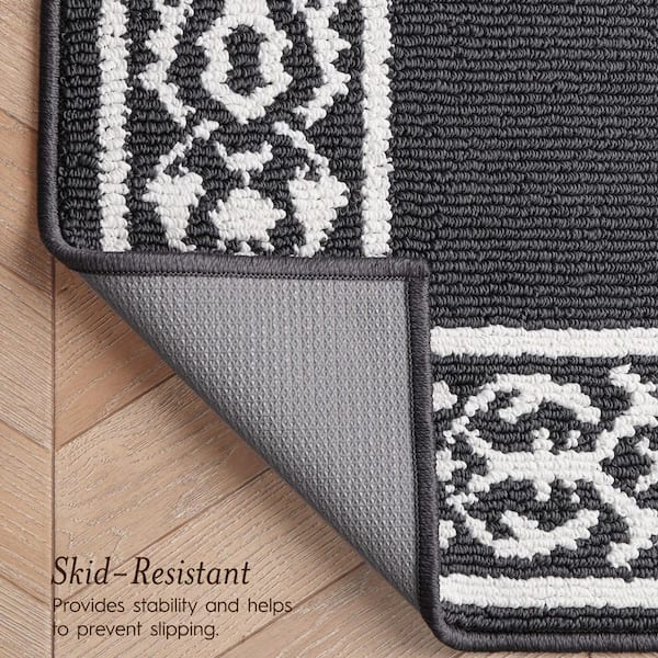 Lorreta 2-Tone Dark Gray/Ivory 2 ft. x 6 ft. Tufted Border Polypropylene Area Rug