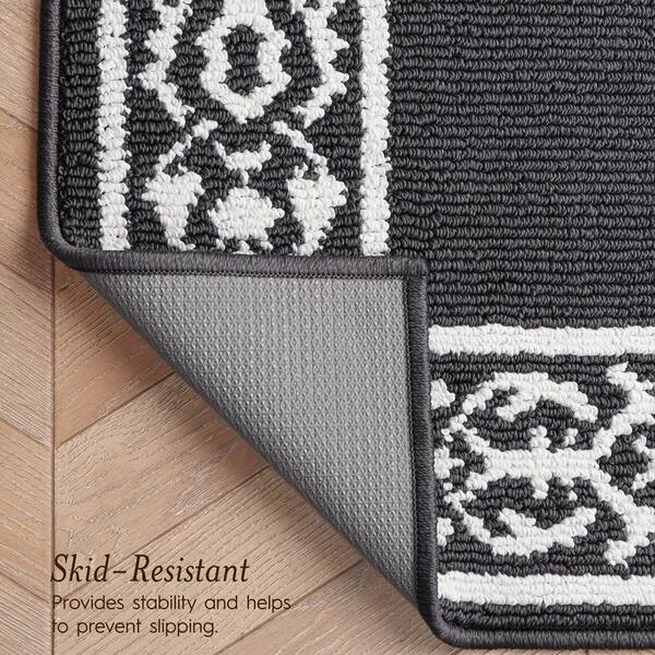 Lorreta 2-Tone Dark Gray/Ivory 2 ft. x 8 ft. Tufted Border Polypropylene Area Rug