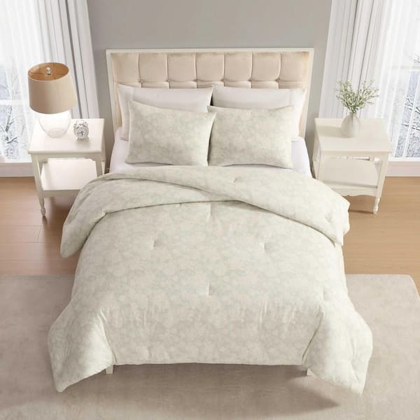 Meredith 2-Piece Silver Green Ground Cotton Flannel Twin Comforter Set