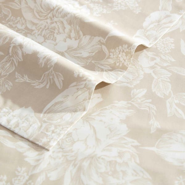 Meredith 4-Piece Beige Cotton Percale Queen Sheet Set