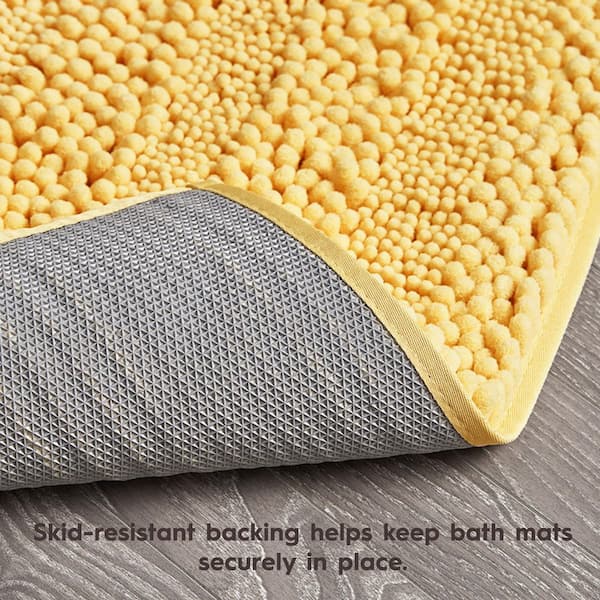 Non-Slip Astor Chenille 20 in. x 34 in. Yellow Polyester 2-Piece Bath Mat Set