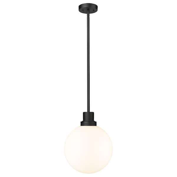 Laurent 1-Light Black Outdoor Pendant-Light with Opal Glass