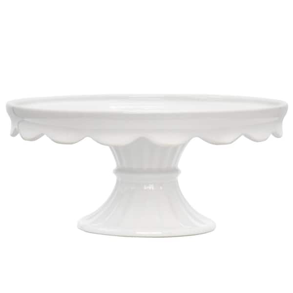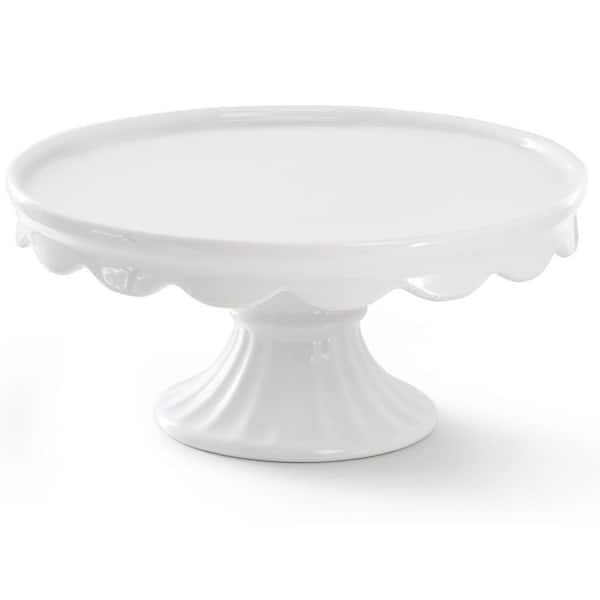 12.2 in. 1-Tier White Round Stoneware Footed Cake Stand