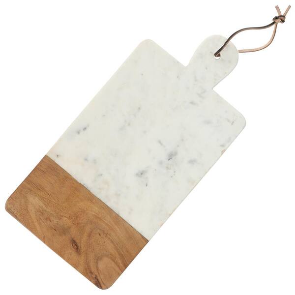 Mix Material 16 in. x 8 in. Rectangular Cheese Board in White Marble and Wood
