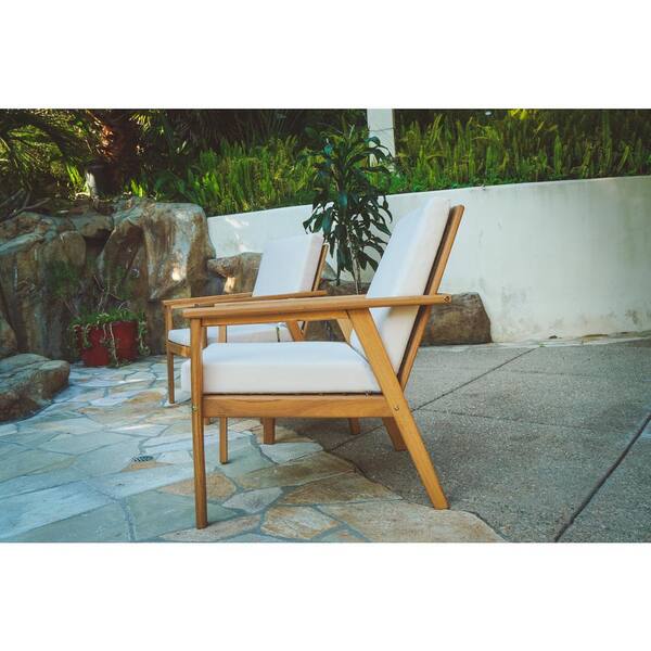Anglesea Natural 3-Piece Wooden Patio Conversation Set with Linen Beige Cushions