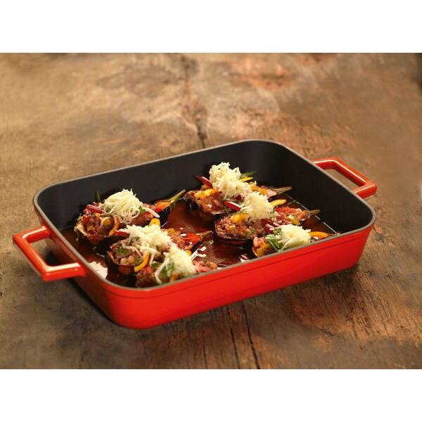 Signature 8-3/4 in. x 14-3/4 in. Enameled Cast Iron Roasting-Baking Pan in Cayenne Red