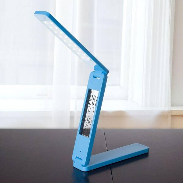 12 in. Blue LED Folding Lamp Book Light with Clock Calendar Alarm