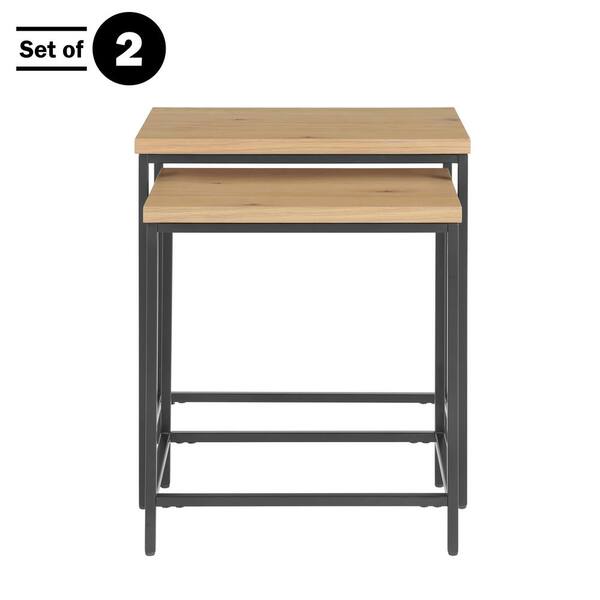 15 in. Brown Finish MDF Wood Tops Nesting End Table with Metal Bases, Set of 2