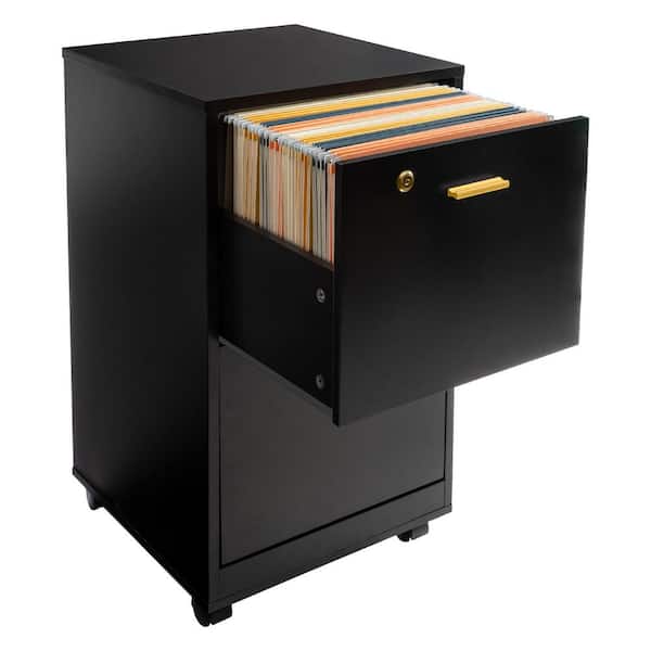 2-Drawer Black Manufactured Wood 15.75 in. Rolling Vertical File Cabinet