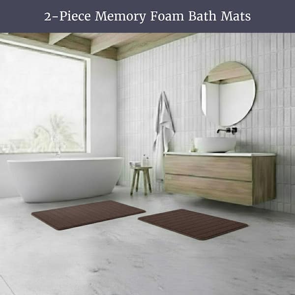 Chocolate 20.25 in. x 32.25 in. Memory Foam 2-Piece Bath Mat Set