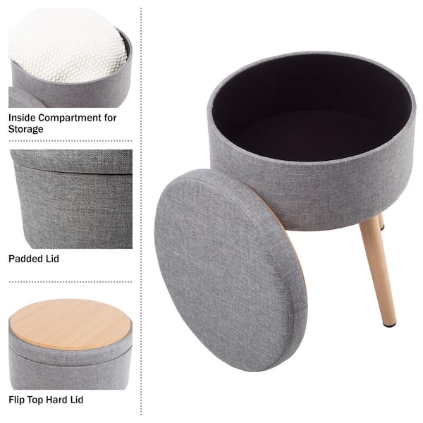 Gray Storage Ottoman - Footrest, Toy Chest, or Storage Organizer with Removable Flip Top Hard Lid