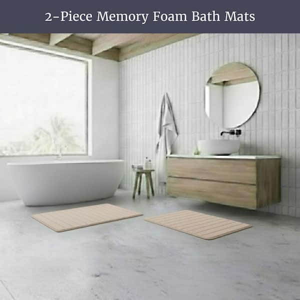 Ivory 20.25 in. x 32.25 in. Memory Foam 2-Piece Bath Mat Set