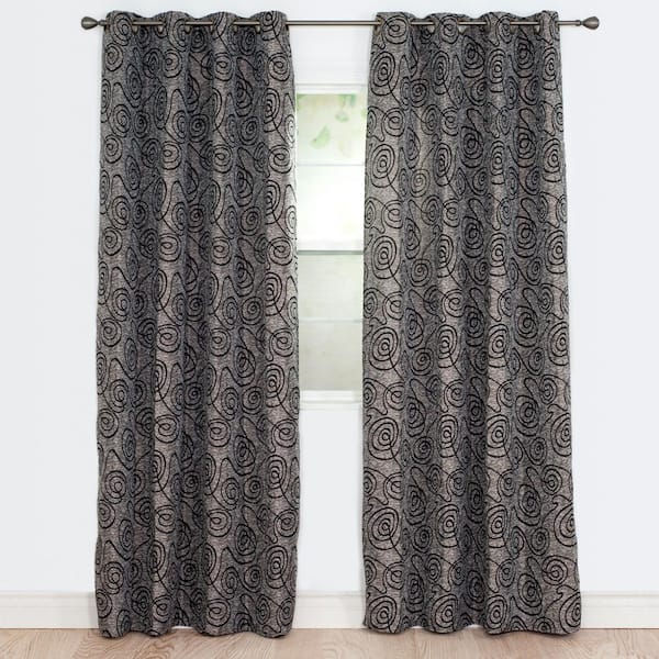 Joy Black Solid Grommet Room Darkening Curtain - 54 in. W x 84 in. L