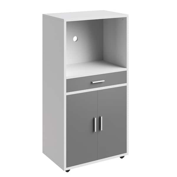 Microwave Stand (L) 23.5 in. x (W) 15.25 in. x (H) 46.75 in. with Drawer Rolling Storage Cabinet with Doors