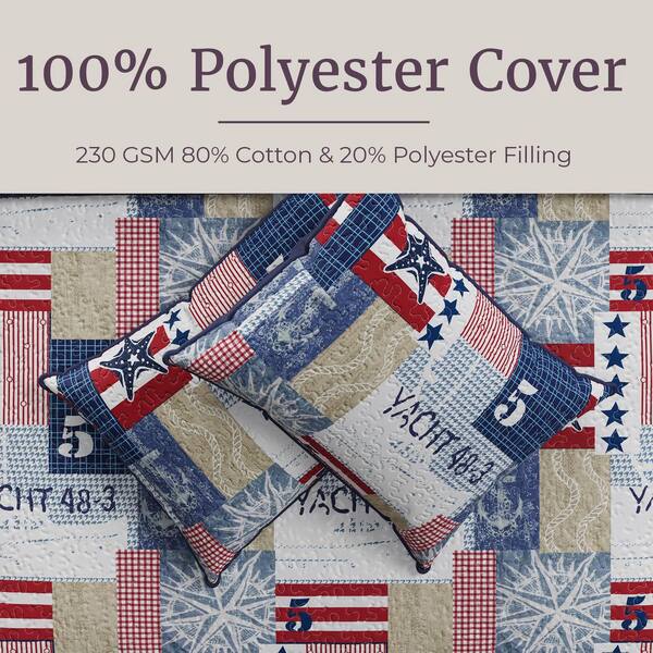 Patriotic Blue Striped and Plaid Queen Quilt