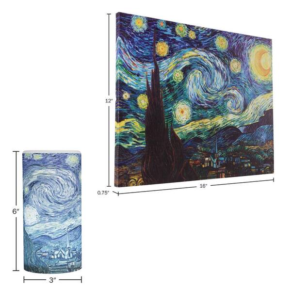 Starry Night by Van Gogh Framed with LED Light and Flameless Candle Abstract Wall Art Set Canvas 12 in. x 16 in.