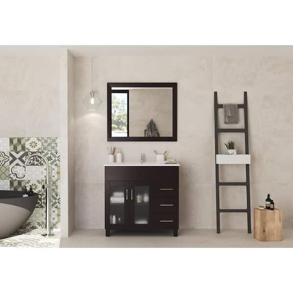 Nova 36 in. W x 18.5 in. D x 34.5 in. H Bathroom Vanity in Brown with Ceramic Top
