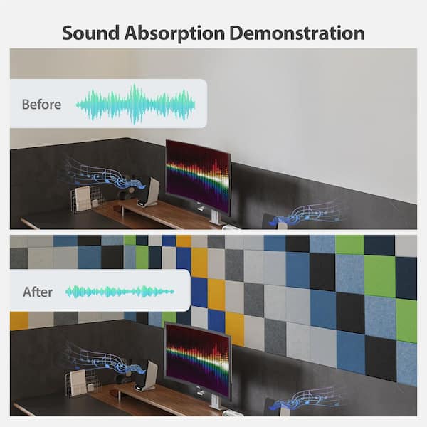 12 in. x 12 in. x 0.4 in. Blue Gray Square Acoustic Panels Self Adhesive Sound Proof Foam for Home, Office, 12 Pcs