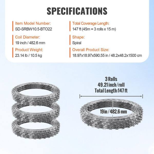 147 ft. Metal Silver Razor Wires, Razor Barbed Wire Galvanized Razor Wire Fence Parts Rolls Razor for Garden
