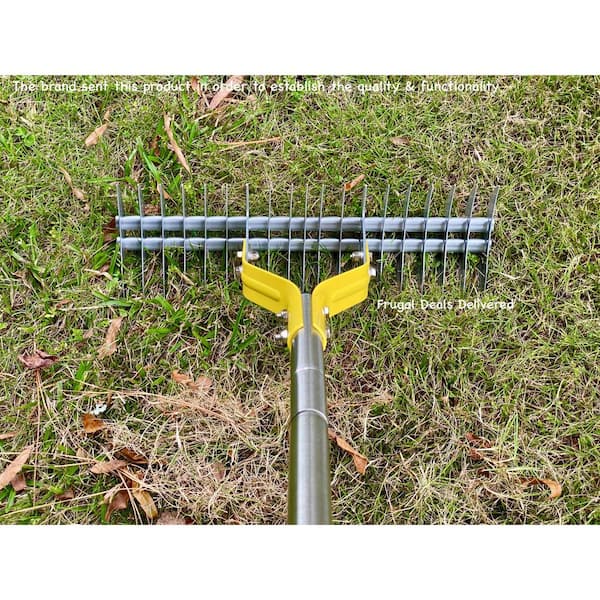 15 in. Wide Steel Metal Grass Rake with 58.5 in. Stainless Steel Handle, Premium Carbon Steel with Heat Treatment