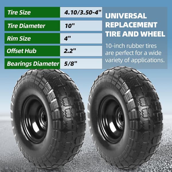 2 Pack 10 in. Flat Free Tire and Wheel for Wheelbarrow, Dolly, Hand Truck, Generator Wheels Replacement