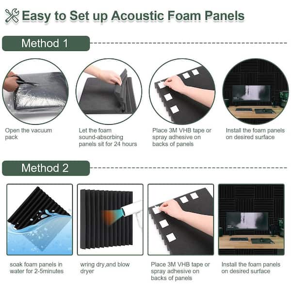 2 in. x 12 in. x 12 in. Black Foam Sound Absorbing Panel, Fire Resistant Soundproof Wedges Panels (50-Pack)