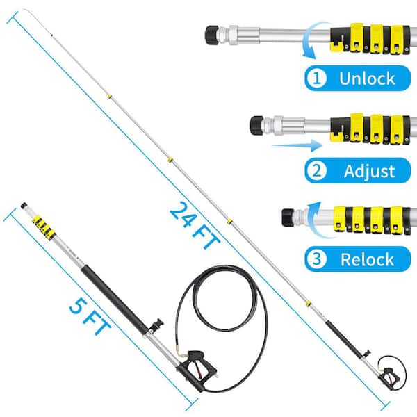 24 ft. Telescoping Pressure Washer Wand Extension, Aluminum Power Washer Extension Wand for 2 Story House